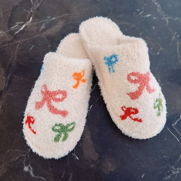 These slippers features a lovely bow design, providing both style and comfort. Its cozy and comfortable material is perfect for a day of lounging, making it an ideal choice for relaxation and leisure.